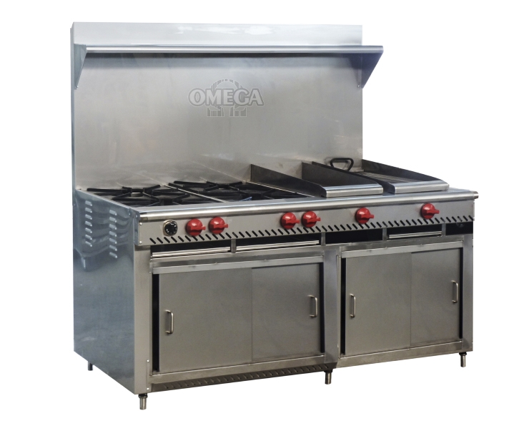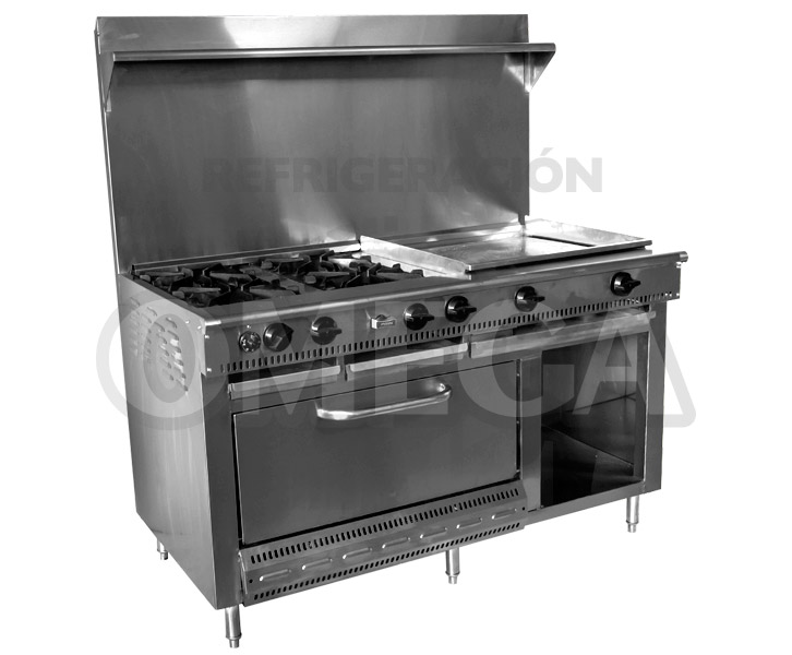 COHPL-4Q - COCINA, HORNO Y PLANCHA DE 10MM DE GROSOR A GAS, CON RESPALDO ba...